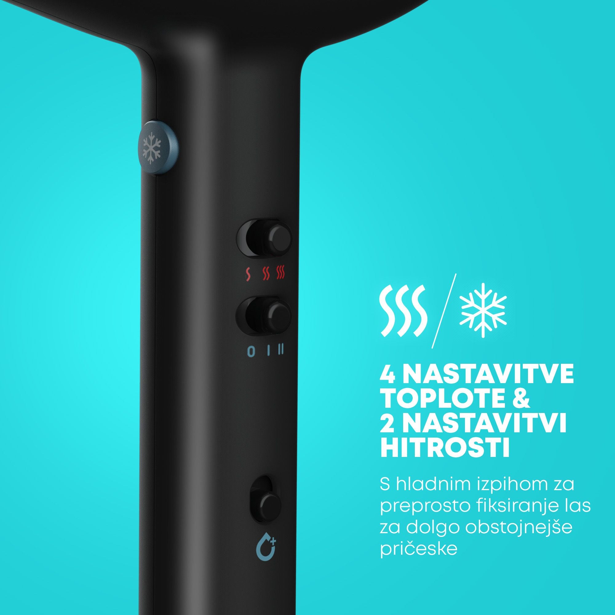 - 4 nastavitve toplote, 2 nastavitvi hitrosti s funkcijo hladnega vbrizgavanja