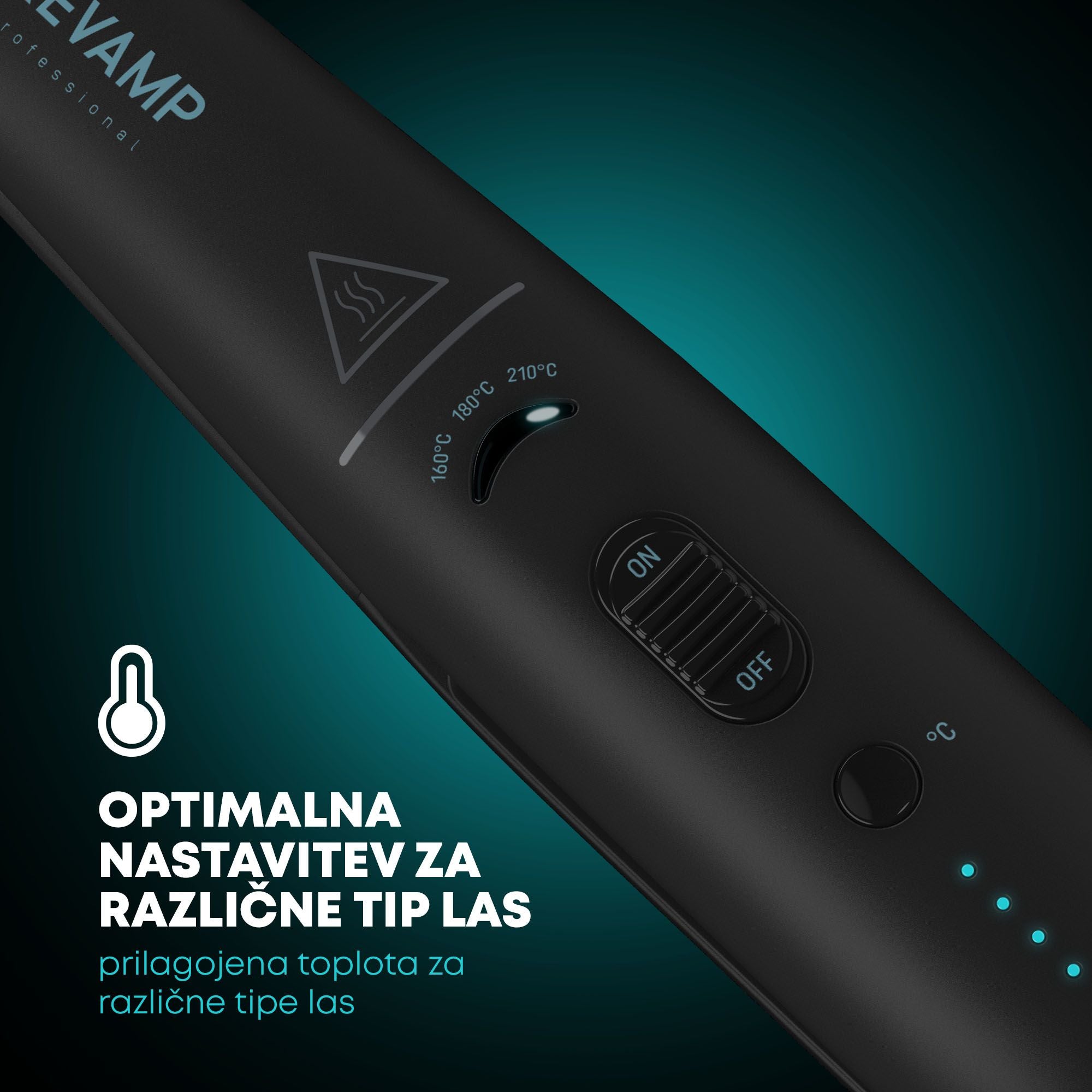 Izberite med tremi možnimi nastavitvami temperature, od 160 °C do 210 °C,